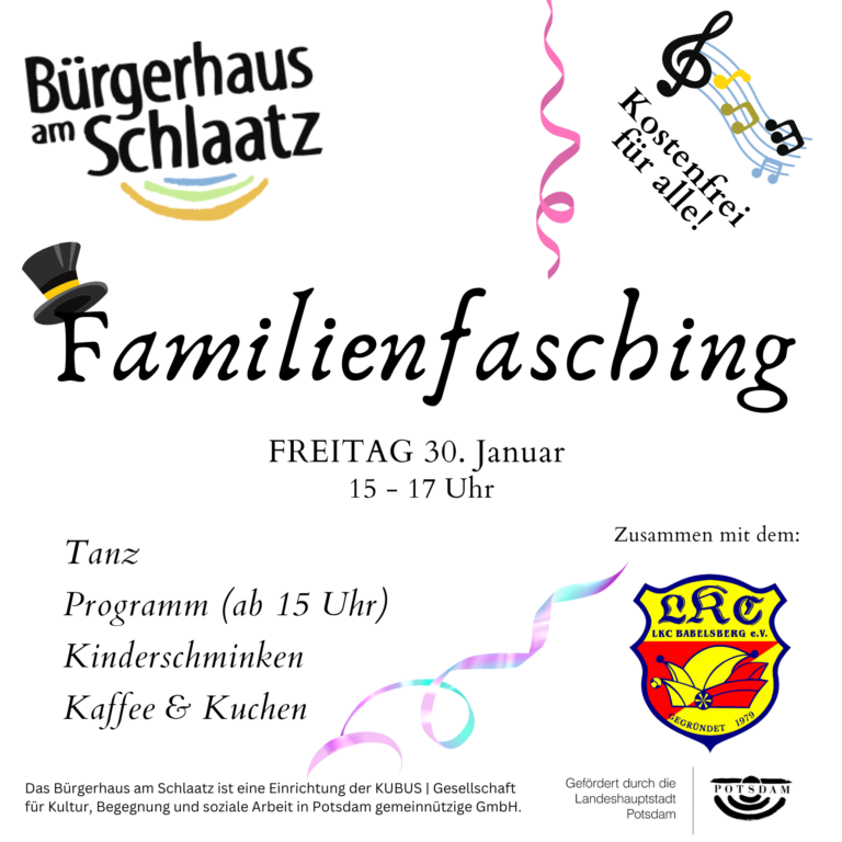 Der LKC Babelsberg e.V. und das Bürgerhaus am Schlaatz laden herzlich zum bunten Familienfasching ein!